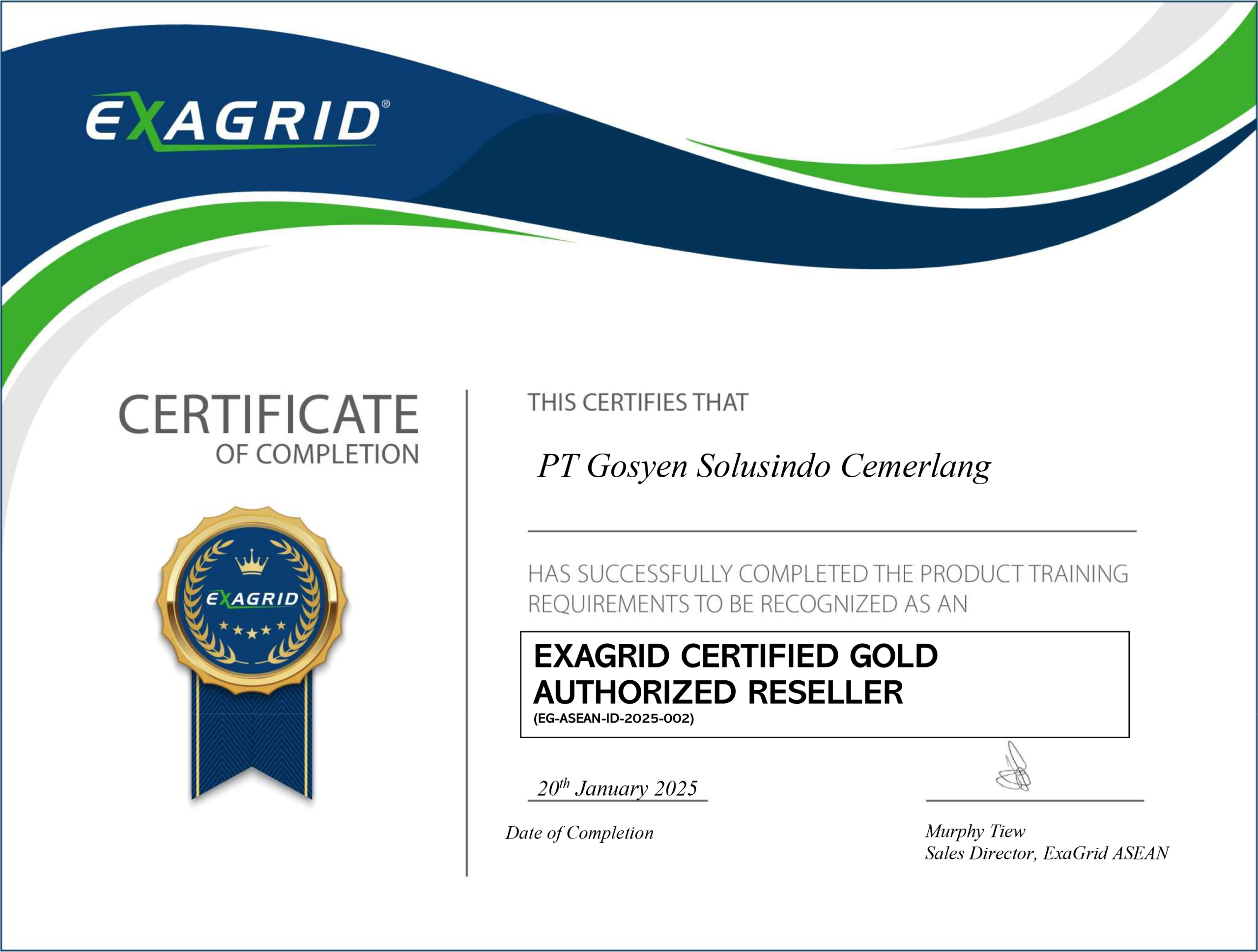 Gosyen Authorised Reseller Certificate (EG-ASEAN-ID-2025-002)